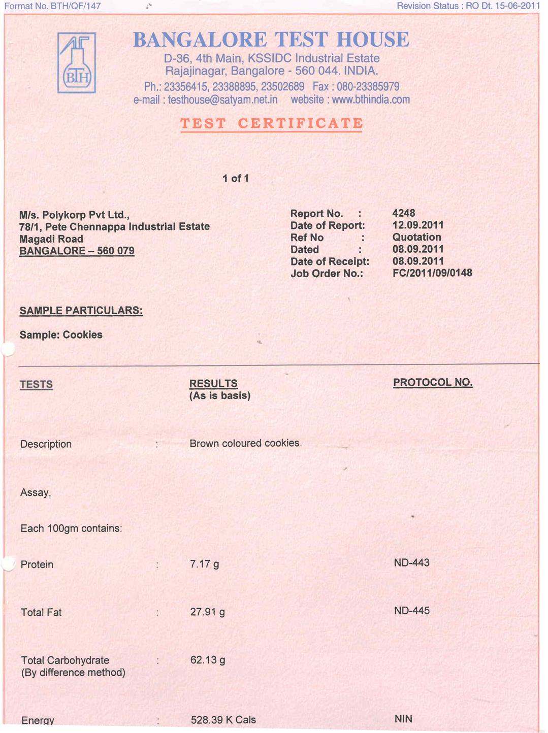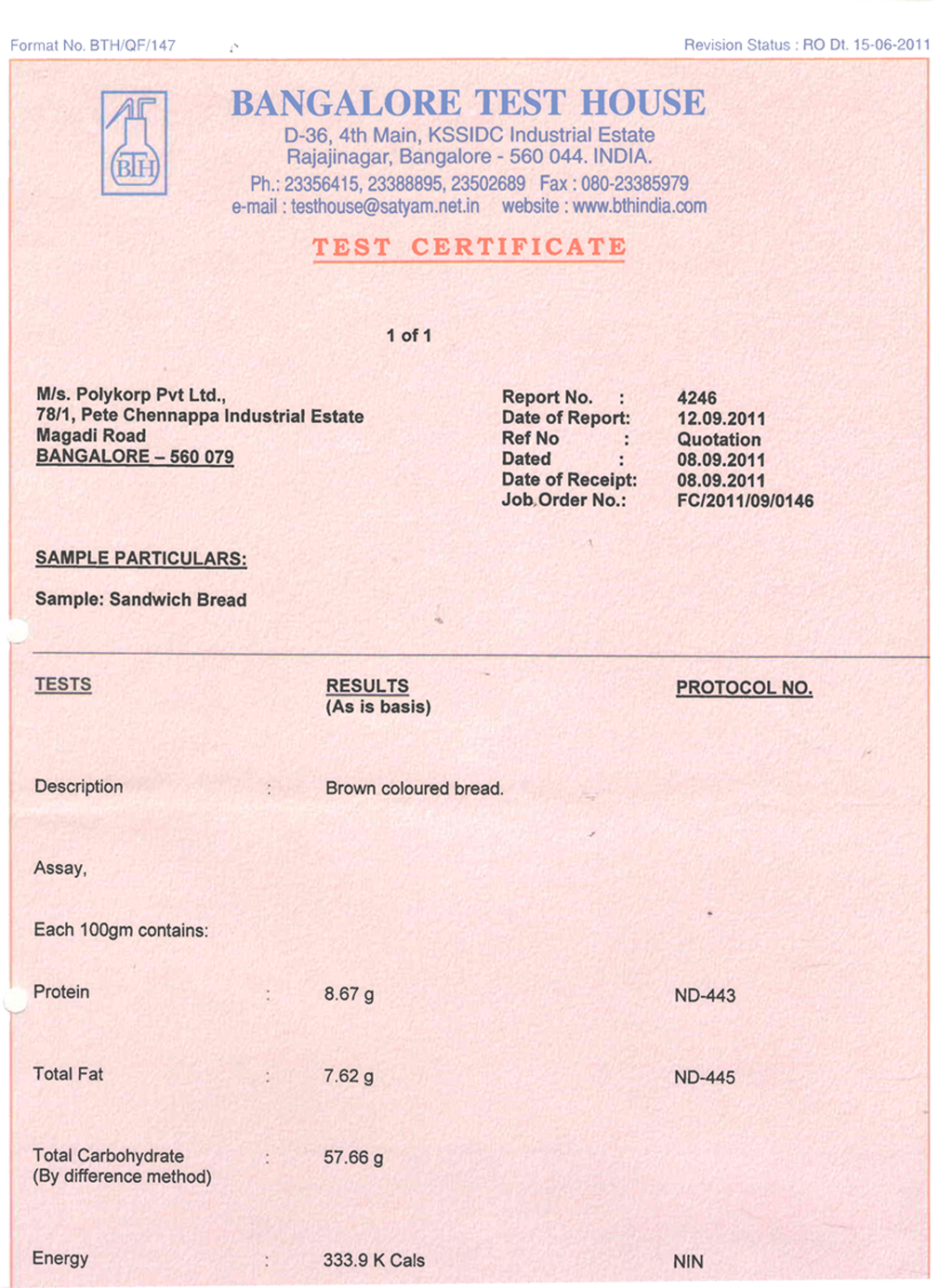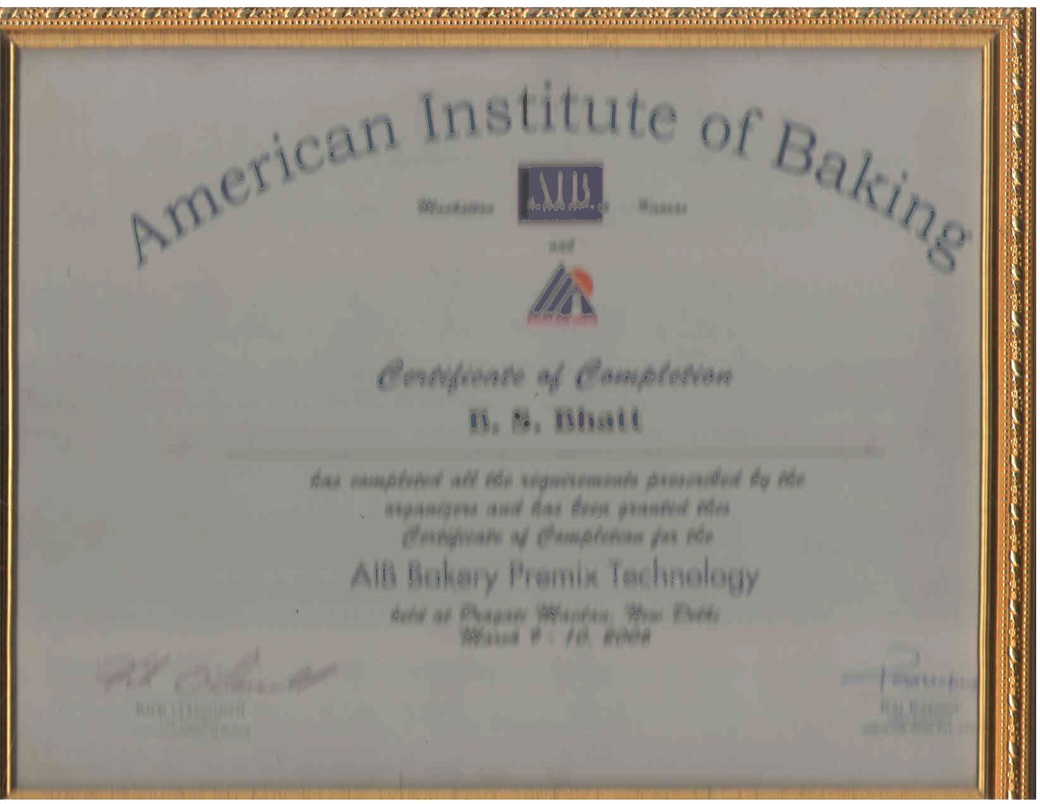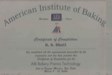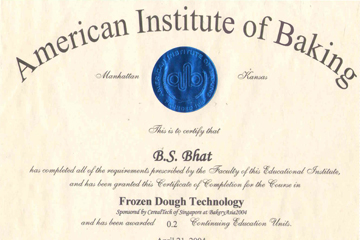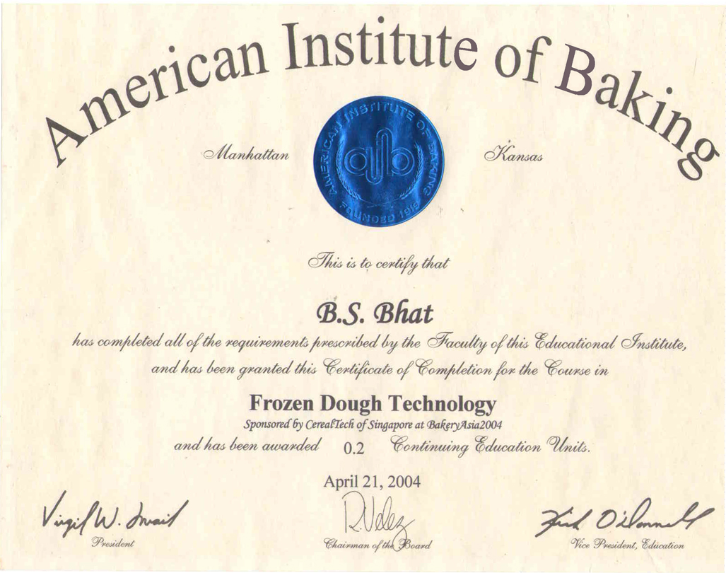 B.S. Bhat completed certificate courses on Frozen Dough Technology, Extending Shelf Life for Cake Products, Bakery Premix Technology
